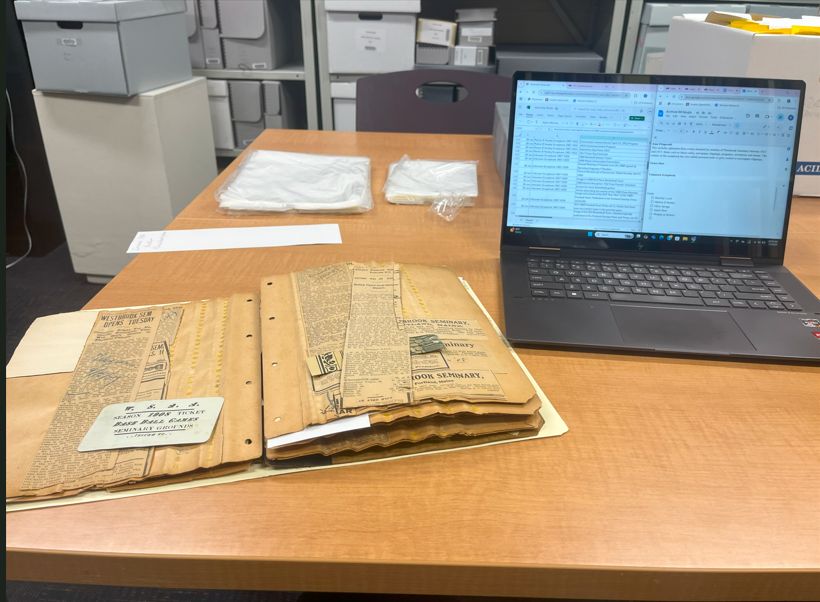 The past couple weeks at my internship have been fun! I have spent a lot of time working on my main project which is creating finding aids to help individuals who want to learn about Westbrook. This requires both a biographical note (information about the individual/organization the item belongs to) and a scope note (tells what kind of material can be found within the series). Also, I have been working on refolding and organizing photographs. For this, I have to put the photos in new plastic sleeves and then resort and rename the previous folders. This work is tedious but definitely worth it!